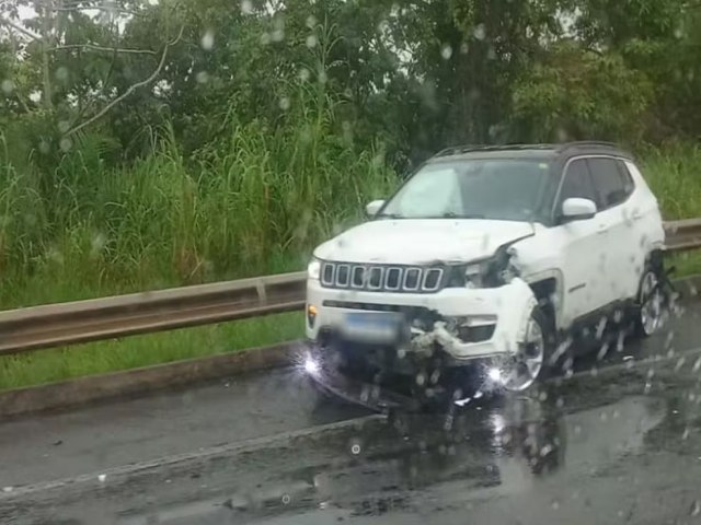 De acordo com a PRF, chovia no momento em que o condutor de um dos carros perdeu o controle da direção e bateu de frente com o outro veículo e em seguida atingiu a motocicleta.